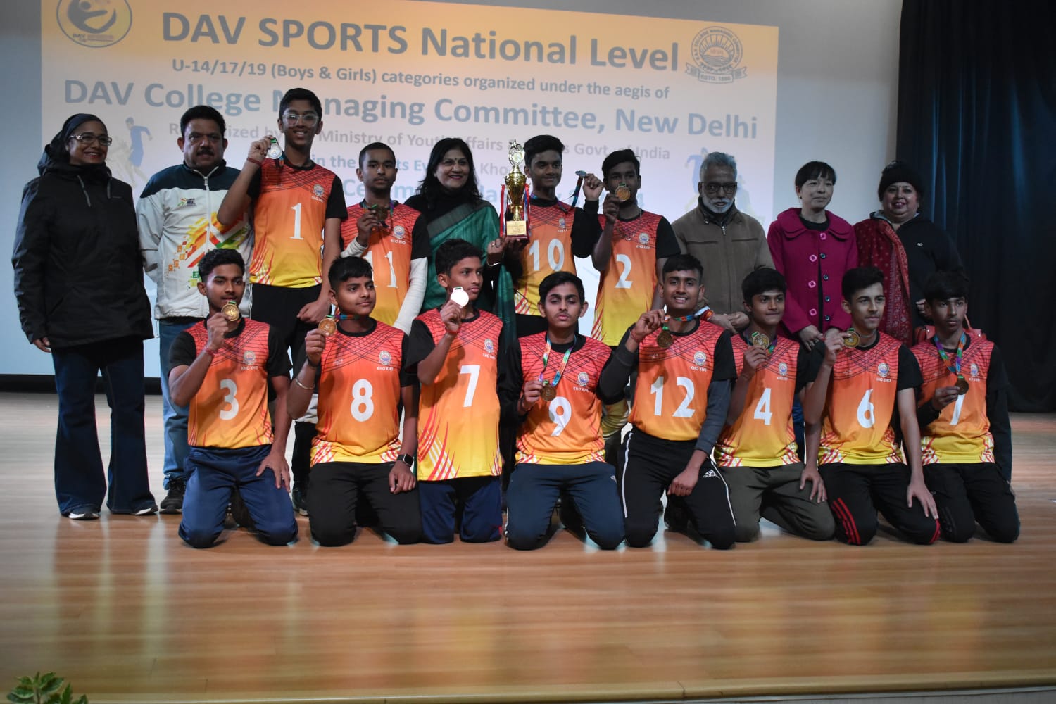The DAV Sports National Level event for Kho Kho, boys in the Under-14/17/19 categories held at DAV Public School, Sector-49, Gurugram, reached its pinnacle with a remarkable valedictory ceremony, radiating enthusiasm and grandeur. This prestigious event was organised under the DAV College Managing Committee, New Delhi and recognised by the Ministry of Youth Affairs and Sports, Government of India. Total 18 states and nearly 520 passionate participants from diverse DAV schools across the nation participated in the event.The ceremony commenced with DAV gaan, setting the tone for the ceremony followed by lamp lighting.The vibrant and energetic Haryanvi dance performance illuminated the event, showcasing the rich cultural heritage of Haryana.The crowning moments of excitement unfolded with the announcement of championship results.