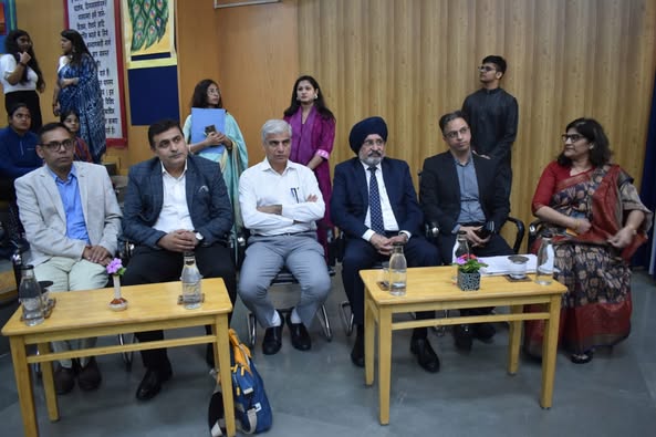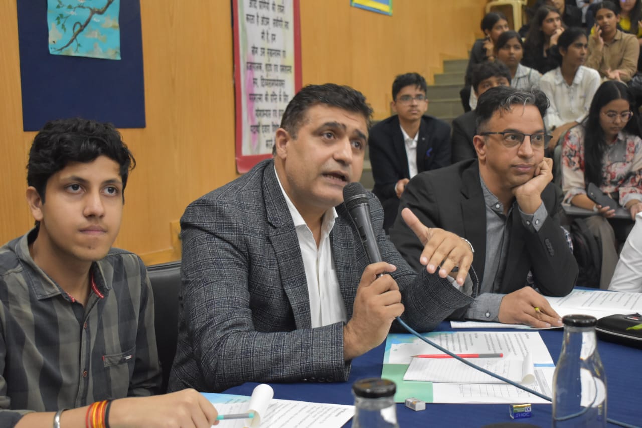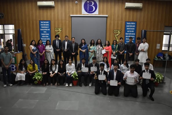 The school then extended a green welcome to the Chief Guest, Dr. Sunil Bajaj, Additional Director, SCERT, Gurugram, Haryana, a distinguished educationist with extensive expertise in curriculum design and teacher training, who has contributed to national and international academic forums and projects with NCERT and SCERT. He was joined by an eminent panel of judges and dignitaries, including Mr. Pankaj Dhingra, Mr. Surender Madan, and school alumnus Mr. Harsh Gupta. The final round presentations saw dynamic performances by shortlisted teams, both on-site and internationally, as overseas participants shared their presentations online, which were also evaluated by the esteemed panel of judges. The competition reflected innovation, analytical depth, and an impressive grasp of financial concepts.