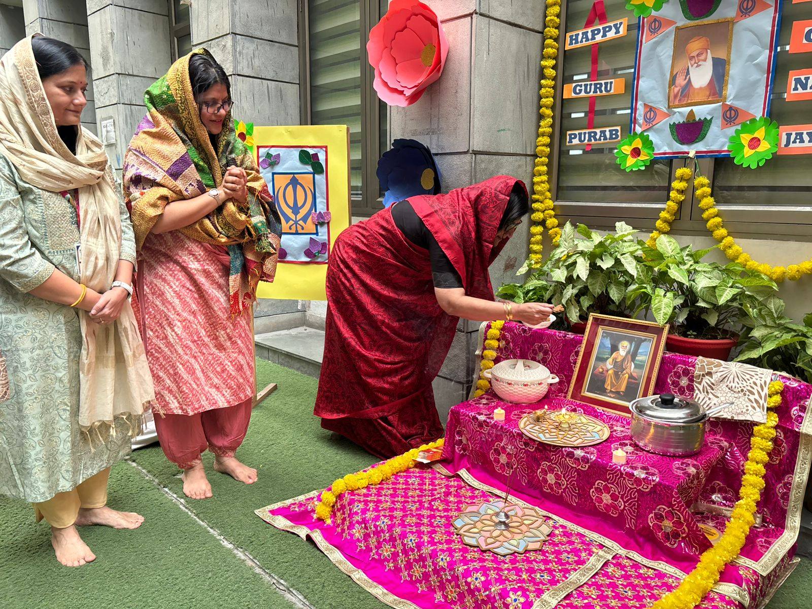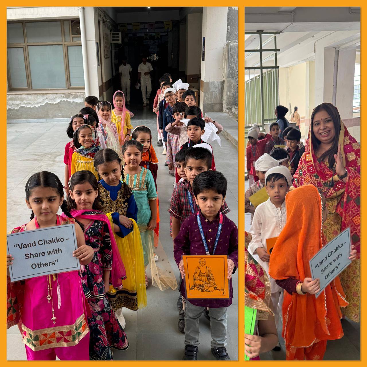 To honour the birth anniversary of Guru Nanak Dev Ji, the founder of Sikhism, the students from Kindergarten to Class II joyfully celebrated Gurupurab in the school premises.The campus resonated with devotion and enthusiasm as everyone came together to remember and reflect upon the teachings of Guru Nanak Dev Ji.The day commenced with a soulful Prabhat Pheri (morning procession). The Principal, Supervisory Head, teachers, and our young devotees walked around the school singing hymns and shabads, accompanied by musical instruments such as the dhol, tambourine, and dafli, spreading the message of love, peace, and harmony. The atmosphere was truly divine as their voices echoed in prayer and devotion.After the Prabhat Pheri, the children gathered in the green area for Shabd Kirtan and Ardaas.The celebration concluded with the distribution of Kadah Prasad (holy offering), marking a sweet and meaningful end to the day — a gentle reminder of the values of sharing, caring, and gratitude.