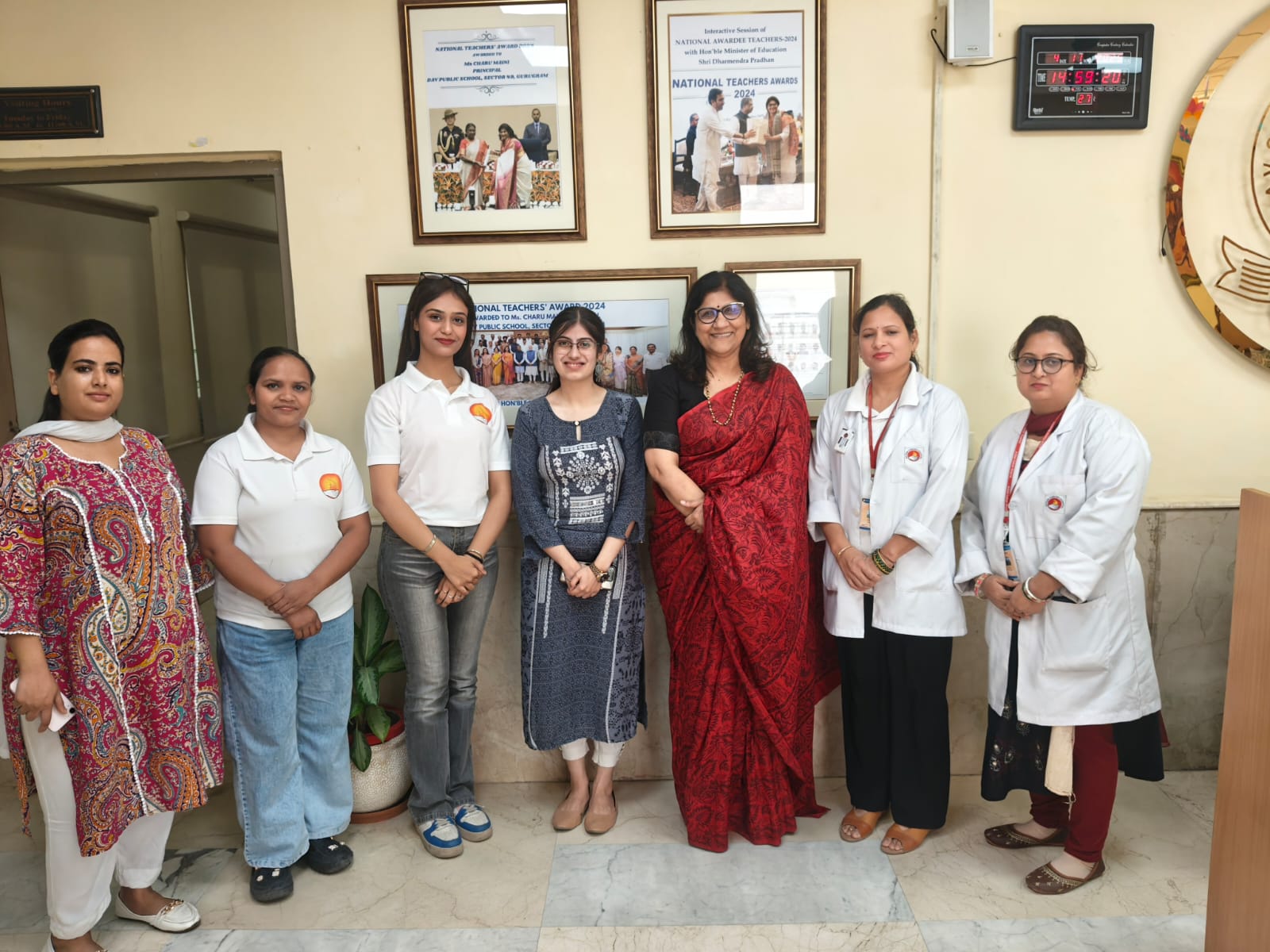 The mammography tests were conducted with great care and efficiency by Radiology Technicians Mrs. Sumitra Mittal and Mrs. Gunjan Garg. The Action Cancer Hospital arranged the mammography van and necessary medical facilities, ensuring smooth and effective conduct of all tests. The overall coordination and medical guidance were further supported by School Physician Dr. Meenakshi, whose contribution added great value to the event.