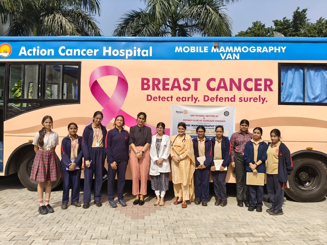A Free Mammography Camp was organized on 3rd and 4th November 2025 at DAV Public School, Sector-49, Gurugram, in collaboration with the Rotary Club, Gurugram, the Interact Club, and Action Cancer Hospital. The initiative, coordinated under Mr. Sanjeev Budhiraja, aimed to promote women’s health, breast cancer awareness, and preventive healthcare among the school’s female staff members and supporting staff (Didis).