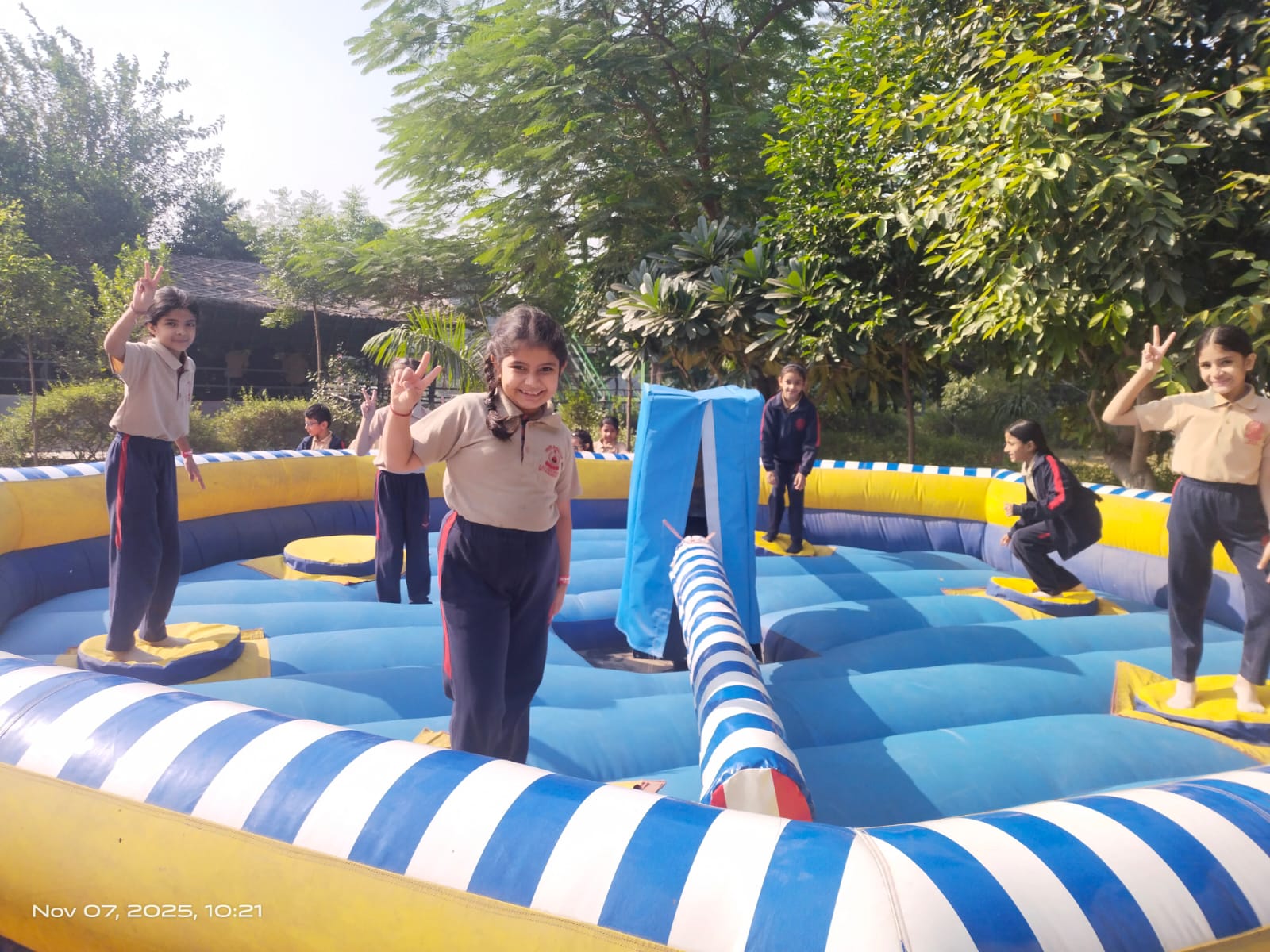 The venue offered a wide range of exciting and enjoyable activities. Students participated in adventurous experiences such as ziplining, sky cycling, Burma bridge, and commando crawl etc. which encouraged courage, confidence, and physical fitness. They also got a glimpse of India’s rural life through camel, bullock, and tractor rides. Creative corners like pottery, mehndi, puppet shows, and magic tricks kept the students engaged and entertained. One of the most enjoyable moments of the day was the energetic dance session on the DJ floor, where students danced joyfully with their friends and teachers.