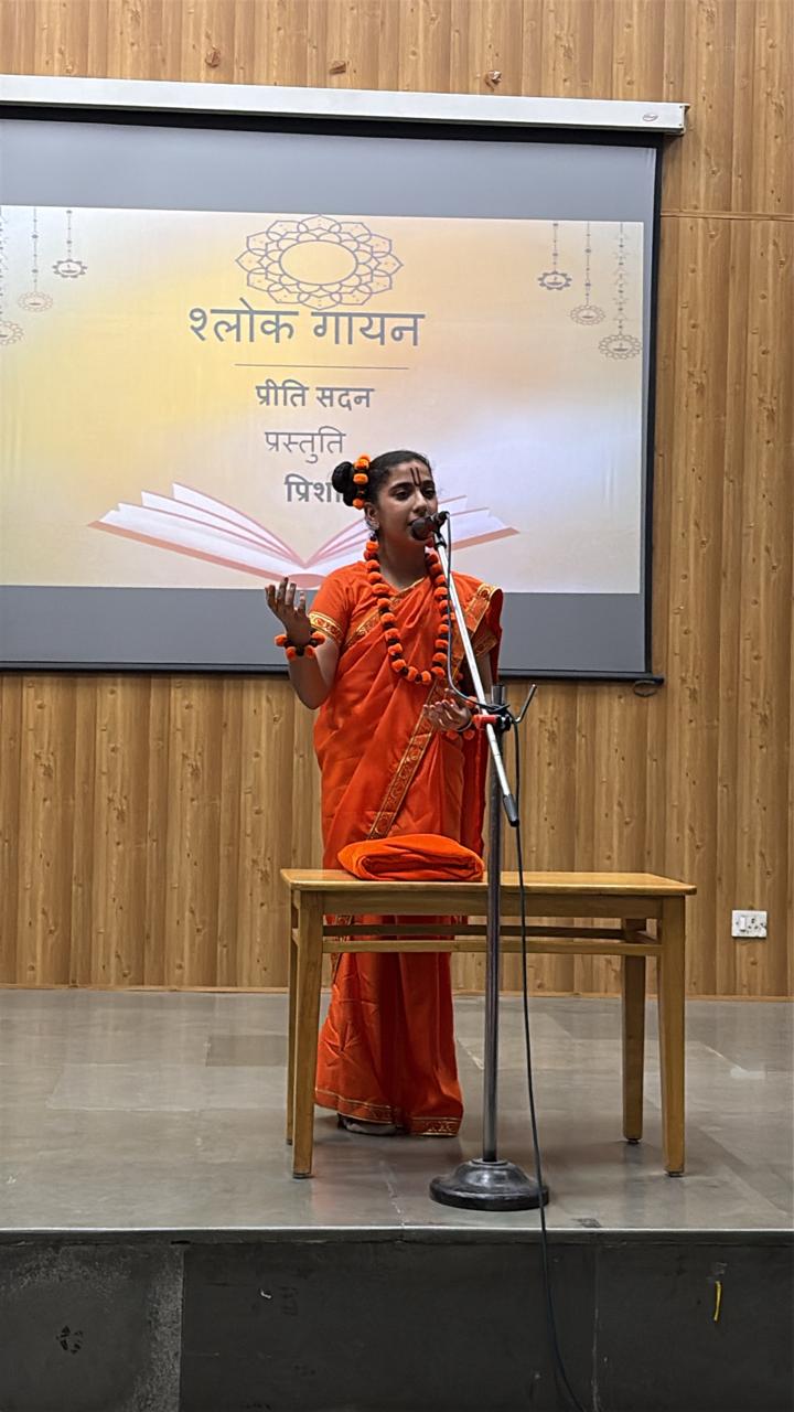 Participants from all six houses—Jyoti, Shakti, Neeti, Jagriti, Preeti, and Kirti—presented shlokas that highlighted moral values, right conduct, discipline, and the essence of good character. Their clear pronunciation, confidence, and expressive recitation reflected sincere understanding of the messages embedded in the verses. The atmosphere was enriched with thoughtful and inspiring chants that emphasised life lessons and ethical principles.