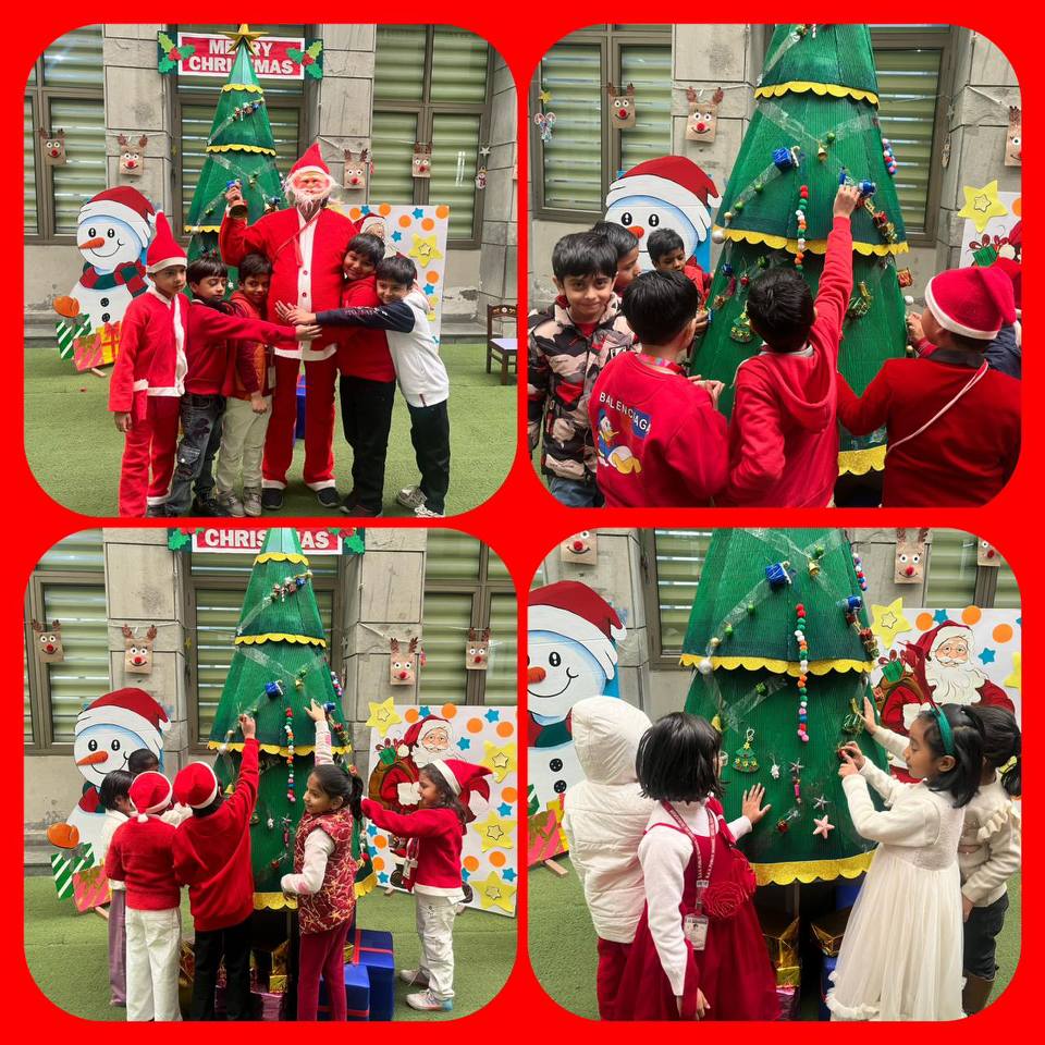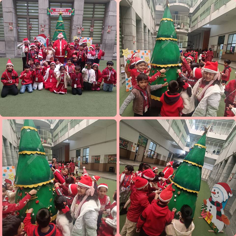*Santa has reached at the doors of DAV Public School, Sector 49, Gurugram, spreading festive cheer and joy all around.* The festive spirit of Christmas enveloped DAV Public School, Sector 49, Gurugram, as Kindergarten, Class I and II students celebrated the Christmas Carnival, ‘December to Remember’, with joy and enthusiasm. Dressed in cheerful red and white, the little ones lit up the celebration with energetic dances, melodious carol singing, and thoughtful conversations on the true spirit of Christmas—love, kindness, and togetherness. Creativity took centre stage as students joyfully engaged in *Christmas craft activities.* Corridors and classrooms transformed into vibrant festive spaces, showcasing handmade decorations created with enthusiasm and imagination. A highlight of the celebration was the *eco-friendly Christmas tree,* crafted from recycled cartons and newspapers, keeping SDG Goal 11 – Sustainable Communities in mind. This best-out-of-waste initiative stood as a symbol of hope, inspiring young minds to understand that even small sustainable steps can create a big impact. The celebration gained deeper meaning with the *‘Joy of Giving’* donation drive, where students experienced the happiness of sharing by donating pre-loved clothes and toys. The Kindergarten, Class I and II block buzzed with warmth, creativity, and compassion, making the *Christmas Carnival truly a *December to Remember.*