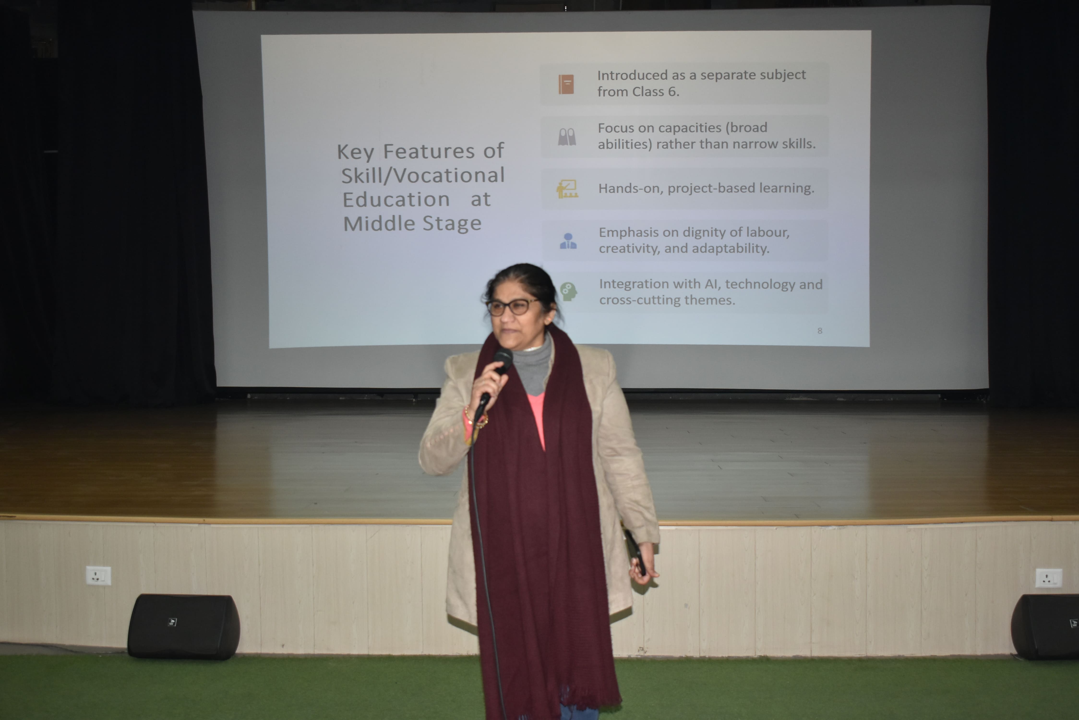 Aligned with the guiding principles of NEP 2020 and NCF 2023, the training empowered teachers with effective pedagogical strategies, assessment methods, and evaluation tools for the successful classroom implementation of Kaushal Bodh, particularly in Classes VI to VIII. Emphasis was laid on learner-centred practices, experiential learning, and competency-based education. The programme reflected the school's strong commitment to continuous professional development and to fostering a future-ready learning environment.